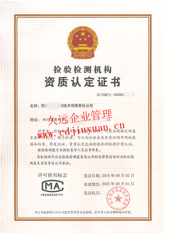 檢驗(yàn)檢測(cè)機(jī)構(gòu)資質(zhì)認(rèn)定證書(CMA)
